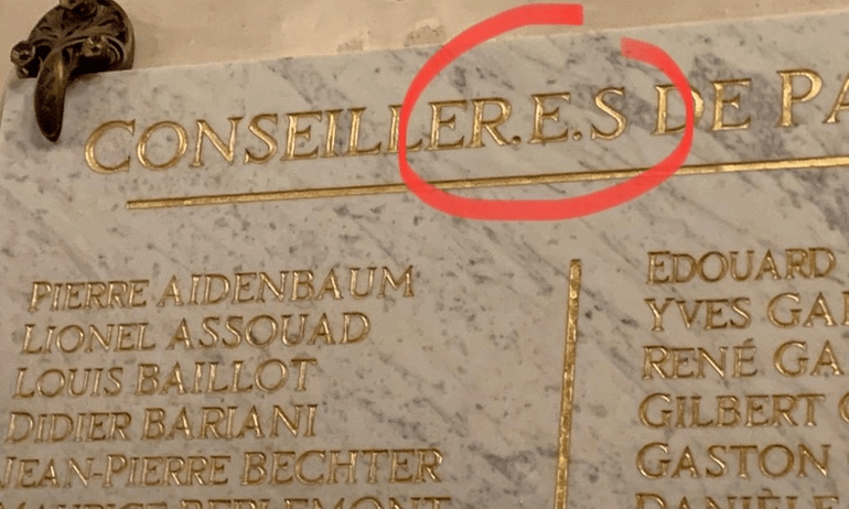 Le Conseil d’État vient de valider l’utilisation de l’écriture inclusive sur les plaques commémoratives. La langue française, attaquée de toutes parts, à commencer par ceux chargés de l’enseigner, et dans le silence absolu de ceux chargés de la défendre, l’Académie française, dont on ne voit jamais la moindre prise de parole de protestation de ces « immortels », aux abonnés absents et qui semblent n’être occupés qu’à choisir ce que seront les broderies de leur costume et le pommeau de leur épée lors de leur nomination, puis à on ne sait quelle interminable sieste ensuite, la langue française ressemble à un navire ayant fait naufrage et dont les débris sont récupérés par des sauvages qui s’en servent pour parer d’abord à leurs besoins immédiats, puis les mêlent à des sonorités sorties de leur cervelle inventive, pour en faire un sabir qui nous fait saigner les oreilles. De là, on aboutit à des Wesh, des J’te kiffe grave, des Doggy, doggy, doggy, dogguiner, et des « .E.S » sur le marbre…