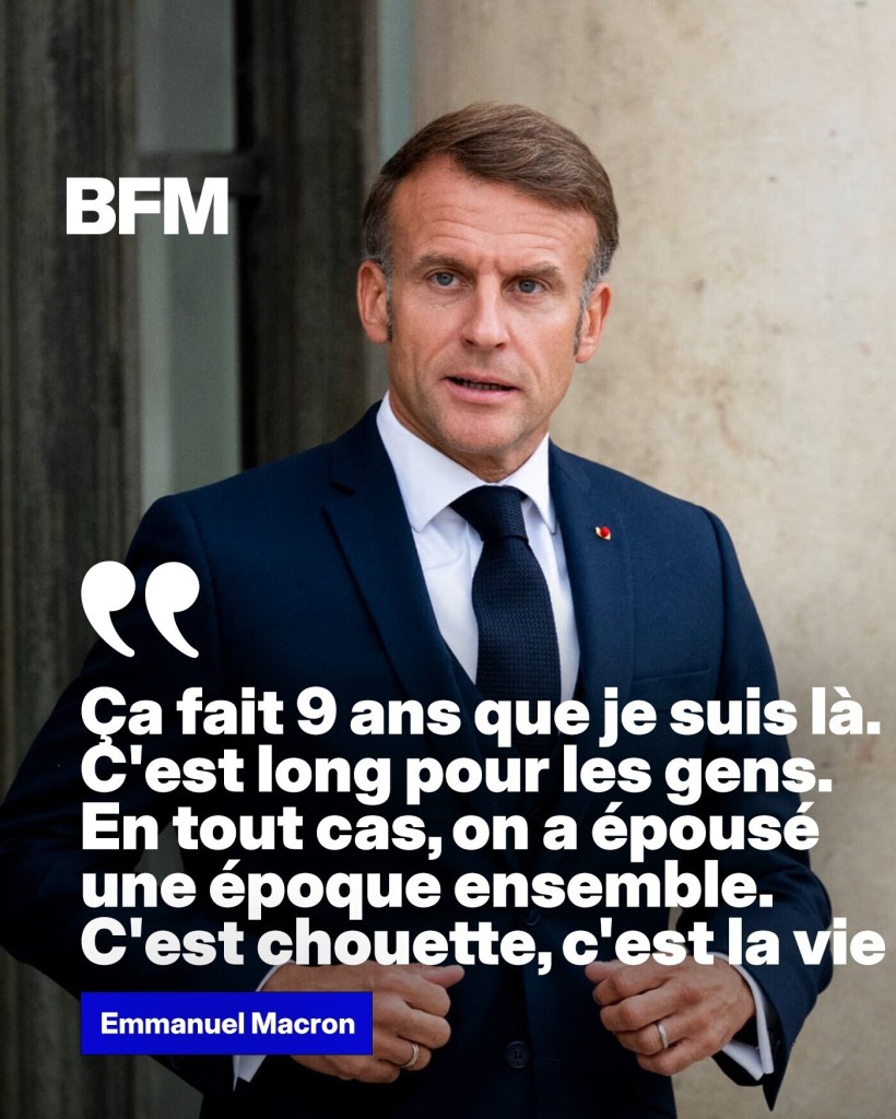 Non, pour un pays endetté de 3 400 milliards, la vie n’est pas « chouette ». Ni pour le Français à découvert bancaire le 10 du mois, ni pour celui qui ne parvient plus à trouver un médecin dans les déserts médicaux du pays, ni pour ceux qui meurent sur un brancard dans les couloirs des urgences parce que l’hôpital public est en ruines, ni pour les millions de voyageurs en train au trajet interrompu, désorganisé, retardé chaque jour parce qu’il a été remarqué qu’un connard séjournait sur les voies, ni pour les policiers qui ne peuvent plus exercer leur mission de neutralisation de la canaille parce que s’ils le font ils seront persécutés par l’État, ni pour les mères de toutes le victimes d’agressions, de viols et de meurtres commis par des gens qui n’ont rien à faire sur notre territoire, ni pour l’agriculteur qui se suicide (un suicide tous les deux jours) à cause des conditions de travail et de vie qu’on lui a fabriquées, ni, ni, ni… on passerait des heures à faire la liste de tout ce qui ne va pas dans ce pays martyr… En revanche pour celui qui a vécu sa « best life » à nos frais et a parfaitement mené à bien sa mission d’abaissement et de démolition de la France, il y a de quoi être satisfait, ses commanditaires occultes le sont aussi.
