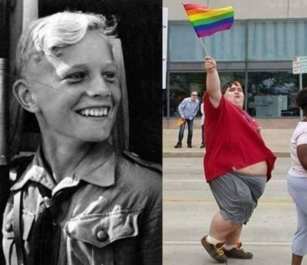 Arrive le moment où un esprit honnête doit accepter d’examiner la course de l’Occident depuis la fin de la Deuxième Guerre mondiale, faire le constat du réel, et s’interroger. Qu’est-ce qui était préférable : une société de droiture morale avec une jeunesse athlétique, saine de corps et d’esprit dans le prolongement de la tradition antique (mens sana in corpore sano) ? Ou bien le spécimen d’homo consumens obsédé par la jouissance personnelle fabriqué en Occident par les vainqueurs de 1945 ? On reconnait une société au type d’homme qu’elle produit. Les vainqueurs occidentaux de 1945 ont fait des obèses ignares, exposent nos enfants à des drag queens dans le cadre scolaire, et veulent transformer les petits garçons en lolitas.