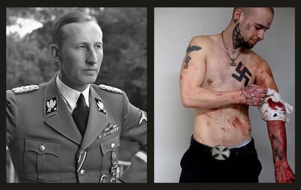 Le nazi cinématographique est une invention hollywoodienne basée sur la déviance d’allure physique qu’en avaient déjà fait les Anglais, Jean Mabire l’a parfaitement expliqué (voir notre article L’imposture skinhead). Le nazi cinématographique n’a absolument rien à voir avec le national-socialisme authentique de 1933 à 1945, et il a bien évidemment été fait pour maintenir la diabolisation du national-socialisme dans l’esprit de l’opinion publique. On trouve le nazi cinématographique par exemple dans American History X avec Edward Norton, Imperium avec Daniel Radcliffe (Harry Potter) et des terroristes « néo-nazis », dans la série Sons of Anarchy avec deux évocations, les « Nord’s » et la « Ligue des nationalistes américains », quand ils ne sont pas d’odieux producteurs de stupéfiants dans leurs labos clandestins… En attendant leur prochaine utilisation par les scénaristes dans une nouvelle production.