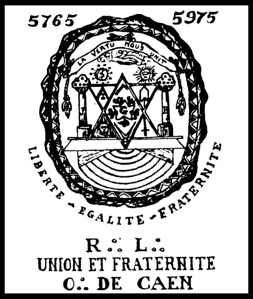 Sur cette image utilisée sur le site de la loge Union et Fraternité (Grand Orient) de Caen pour illustrer le discours de l’Orateur lors de l’allumage des feux (sa création) le 4 mai 1975, la devise de la République (qui est celle du Grand Orient de France), l’étoile de David, et les deux colonnes Jakin et Boaz (marquées des initiales J et B) du Temple de Salomon. Un graphisme explicite illustrant l’affiliation de la Franc-Maçonnerie à l’univers mental du judaïsme.