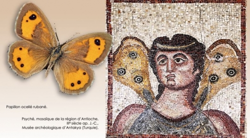 Parmi les nombreux animaux du Bestiaire de Rome, arrêtons-nous aussi brièvement sur le papillon. Platon, dans le Phèdre, soutenait que ce gracieux insecte faisait allusion aux ailes de l’âme qui, en vertu du processus anamnestique, aspirait à se réunir avec les réalités idéales. Ainsi, « Psyché, conservée au musée du Capitole, […] est une figure féminine avec des ailes de papillon » (p. 110). Psyché-papillon vit en intimité avec la force céleste, aimée par le divin et tendue anagogiquement dans un iter qui l’élève au Bien-Belle. Dante, dans la Commedia, est conscient de ce contexte lorsqu’il écrit : « Vous ne vous rendez pas compte que nous sommes des vers/ Nés pour former le papillon angélique/ Qui vole vers la justice sans écran ?