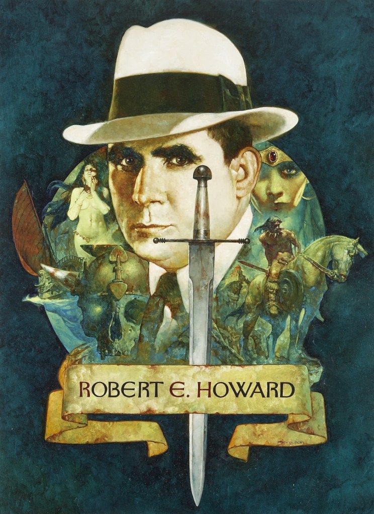 Comme son plus fameux personnage, Robert E. Howard passa de l’état d’enfant chétif à celui de colosse de près de deux mètres et cent kilos, pratiquant intensivement le sport, de la boxe à l’équitation. Et pourtant, il ne franchira presque jamais le seuil de la maison familiale de Peaster (Texas) où il était né le 22 janvier 1906. Passionné de littérature et d’histoire, lecteur insatiable, il commence à écrire à l’âge de 9 ans. Névrosé, hypersensible, secret (certains, dans son entourage proche, ignorent qu’il écrit), exagérément attaché à sa mère (il manque de se suicider à trois reprises à cause de la maladie de cette dernière), totalement indifférent à son père, il est traumatisé à 24 ans par la mort de son chien, qu’il refuse d’admettre. Écorché vif vivant dans des mondes imaginaires, éternel adolescent, Howard est aussi totalement paranoïaque, persuadé d’être perpétuellement menacé, n’hésitant pas à s’emparer d’une arme pour mettre en fuite des ennemis invisibles ! Dans toute situation, il se déconnecte du réel, s’imagine chevalier, trappeur ou soldat, luttant seul au cœur d’un monde primitif, brutal et inquiétant, où le courage et la force sont les meilleures armes qui soient. Ne cessant jamais d’écrire, souvent dans un état proche de la transe (Howard raconte que ce sont ses personnages qui lui dictent leurs aventures), il va laisser derrière lui une œuvre colossale et de grande qualité, bâtie en moins de 15 ans. Ses écrits paraissent à partir de 1920, professionnellement en 1925 comme mentionné plus haut, et jusqu’à 1930, dans Weird Tales et bien d’autres pulps. Au cours de cette époque, Howard s’essaie à tous les genres littéraires (sportif, policier, aventure, western, etc.). Outre Conan, dont il a écrit 18 aventures (poursuivies plus tard par Sprague de Camp, Lin Carter ou Robert Jordan), il va donner vie à bien d’autres personnages comme Kull, Solomon Kane, El Borak ou Bran Mak Morn. Mais le Cimmérien demeure sa création la plus achevée, et celle à laquelle on peut le plus l’identifier. Né sur un champ de bataille, fils d’un forgeron d’origine méridionale qui émigra vers les sauvages et arides territoires du Nord, Conan est un être violent, solitaire, errant, vivant dans l’instant, guetté perpétuellement par la mort toute proche. S’il tire jouissance du vin et des femmes, s’il rit parfois, Conan est avant tout un guerrier implacable, combattant de toutes ses forces pour survivre dans un monde brutal et surnaturel dans lequel l’a placé Howard. Un monde parfaitement décrit par ce dernier, composé de multiples régions et ethnies, et situé à l’âge Hyborien, 8 000 ans après l’engloutissement de l’Atlantide, soit il y a quelque 12 000 ans. Conan est un fougueux mélange de Sinbad et du Roi Arthur, ne respectant qu’un seul dieu (Crom), parcourant les contrées les plus hostiles, sillonnant les mers, s’emparant d’incalculables trésors, luttant contre monstres et sorciers, vivant une idylle tumultueuse avec la féline Bêlit, reine de la Côte Noire. Son cuir tanné par le soleil et le froid, il craint plus le luxe des palais que les steppes enneigées battues par le vent ou les déserts cuisants. Combattre est sa raison de vivre et l’action son moteur, qui le conduiront sur le trône d’Aquilonie, à l’approche de ses 50 ans. Un âge que n’atteindra jamais Robert E. Howard. Apprenant le décès imminent de sa mère le 11 juin 1936, il s’empare d’une arme et se tire une balle dans la tête. Sa mère meurt le lendemain et tous deux seront enterrés le 14 juin. Howard n’avait donc que 30 ans et vécut sans jamais trouver sa place dans notre réalité.