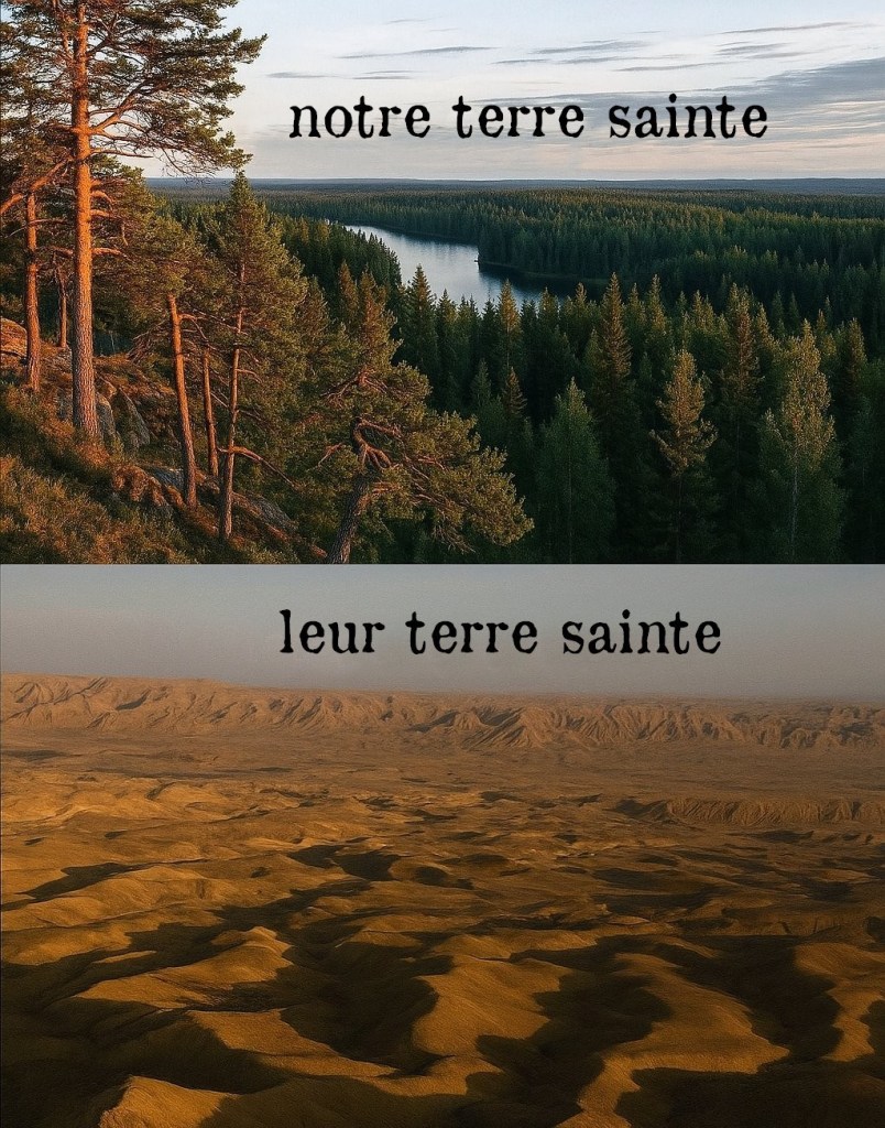 D’où le report de la sacralité, comme le dit très bien Dominique Venner, sur l’invention d’un Créateur extérieur à notre mode. Mais l’aridité stérile de la Nature dans les contrées du désert n’avait rien à voir avec la générosité nourricière de la Nature chez nous, faite de terre fertile, d’eau abondante, de gibier et de forêt protectrice, toutes choses propices à la vie, et qui avaient donc conduit nos peuples à sacraliser la Nature. Le rapport négatif à la Nature des sémites était leur affaire, pas la nôtre. Pourquoi a-t-il fallu que la sacralité que nous trouvions dans la générosité des éléments de la Nature sur notre sol européen, ait été écrasée et remplacée par cette sacralité abstraite du « dieu unique » issue du désert stérile et de cerveaux masochistes, faite de crainte du « châtiment divin », de culpabilisation, de « faute originelle », de péché, de repentir et de damnation, pensée étrangère à l’âme européenne ! On ne peut qu’avoir en permanence à l’esprit cette orientation anormale et absurde de notre histoire.