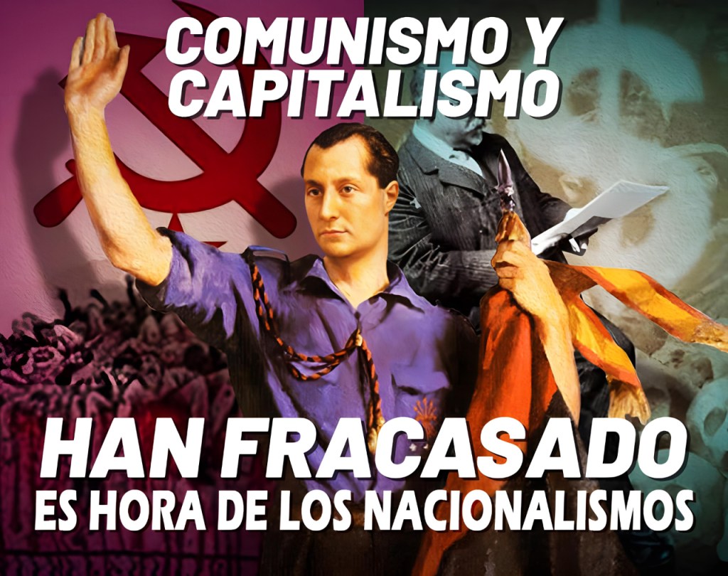 Il est bien évident que l’Etat qui accepte une si haute mission ne peut plus tolérer que sous le nom de libéralisme se perpétuent le développement de l’égoïsme et de l’avidité et l’exploitation du travailleur par le capitalisme. Les pages de doctrine de Jose-Antonio sont catégoriques à cet égard. Il condamne en même temps, comme des maux inséparables ou plutôt comme les deux faces de la même fausse monnaie, le libéralisme et le capitalisme. (…)