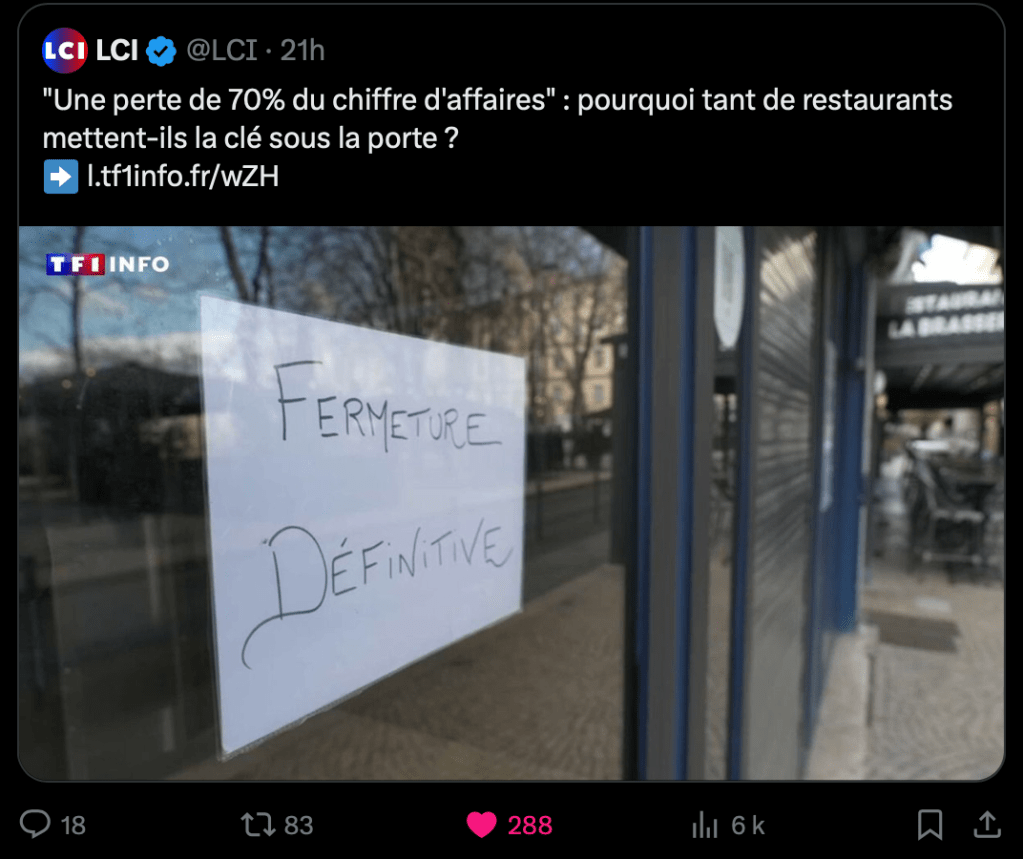 Parce que des tas de personnes n’ont plus envie de faire bosser des clandos qui réchauffent dans des conditions d’hygiène douteuse, des plats semi-industriels, dégueulasses et hors de prix, pour finalement engraisser des mecs qui contrôlaient leurs certificats de vaccination avant de leur servir un café ? Sinon on peut aussi féliciter « Cauchemar en cuisine » pour sa contribution à l’éveil des gens sur la réalité de ce qu’est devenue la restauration en France. Ces gens ont tué leur profession. Le con subit ce qu’il doit subir Combien reste-t-il de restaurants français authentiques, du terroir, avec un personnel du terroir, faisant de la cuisine en cuisine, et des recettes de la tradition gastronomique qui a fait la renommée de la France ?…