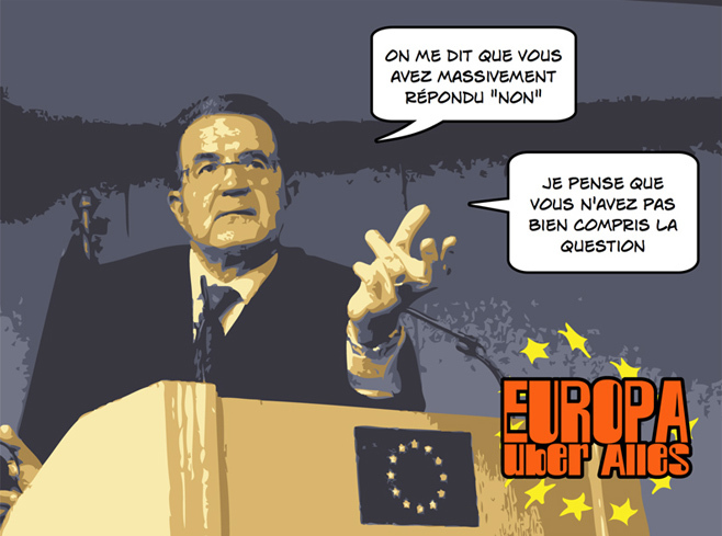 Dans un fonctionnement honnête et loyal, avec ce résultat l’affaire est entendue. Mais en 2007 Nicolas Sarkozy fait adopter par les parlementaires à travers le traité de Lisbonne ces dispositions qui avaient été rejetées par le peuple deux ans plus tôt.