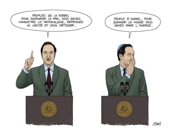 La mixité raciale est une ingénierie sociale, une violence, qui cultive le paradoxe d’être à la fois explicite dans son résultat et sournoise dans sa source, organisée à partir d’une philosophie dont UN peuple est le fervent propagandiste, valable pour les autres (diffusée à travers ses filiales maçonniques), pas pour lui-même bien entendu. Parce que l’universalisme est pour ce peuple une « identité protectrice » selon Robert Badinter. Au détriment d’autrui.