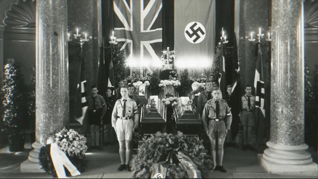 Nous sommes en 1936. Des membres de la Jeunesse hitlérienne montent la garde autour des cercueils de cinq écoliers anglais, morts d’épuisement et d’hypothermie après avoir été piégés dans une tempête de neige lors d’une randonnée dans la Forêt-Noire.
