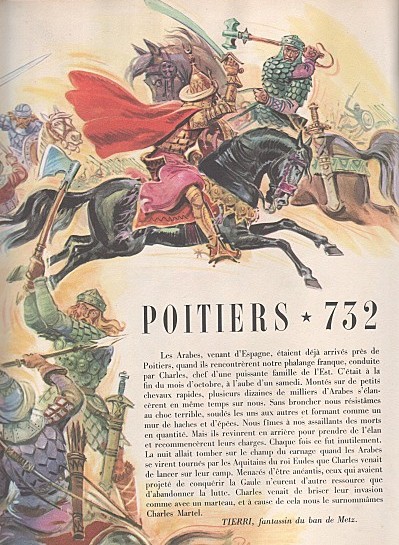 Charles Martel et ses Francs arrêtent les sarrasins lors de la bataille de Poitiers.