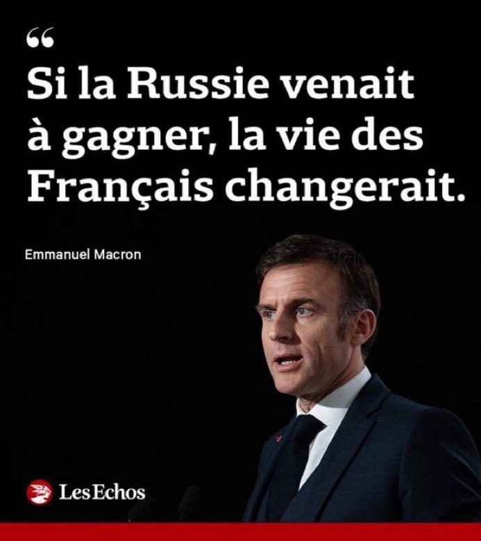 Mais pas dans le sens où il voit la chose. Avec une victoire militaire bien au-delà de l’Ukraine, nous aurions une chance de nous débarrasser de toute la putrescence sociétale et écolo-punitive de l’Occident dégénéré qu’il incarne, de renouveler la classe politique en profondeur, de mater la canaille et faire triompher l’Ordre, de sortir de l’Union européenne, retrouver une énergie bon marché et un peu de dignité dans le concert des nations. Les Français veulent vivre en sécurité dans un pays sain et bien géré, aspiration légitime élémentaire ne relevant d’aucun extrémisme, et qui leur est pourtant totalement interdite par la mafia républicaine et gauchiste depuis cinquante ans. Une amélioration de la vie insupportable à ce fléau présidentiel dont l’accession au pouvoir fut fabriquée de façon déloyale, avec pour mission de détruire au-delà encore de ce qu’avaient fait ses prédécesseurs, la richesse, la prospérité, la souveraineté et l’indépendance de la France.
