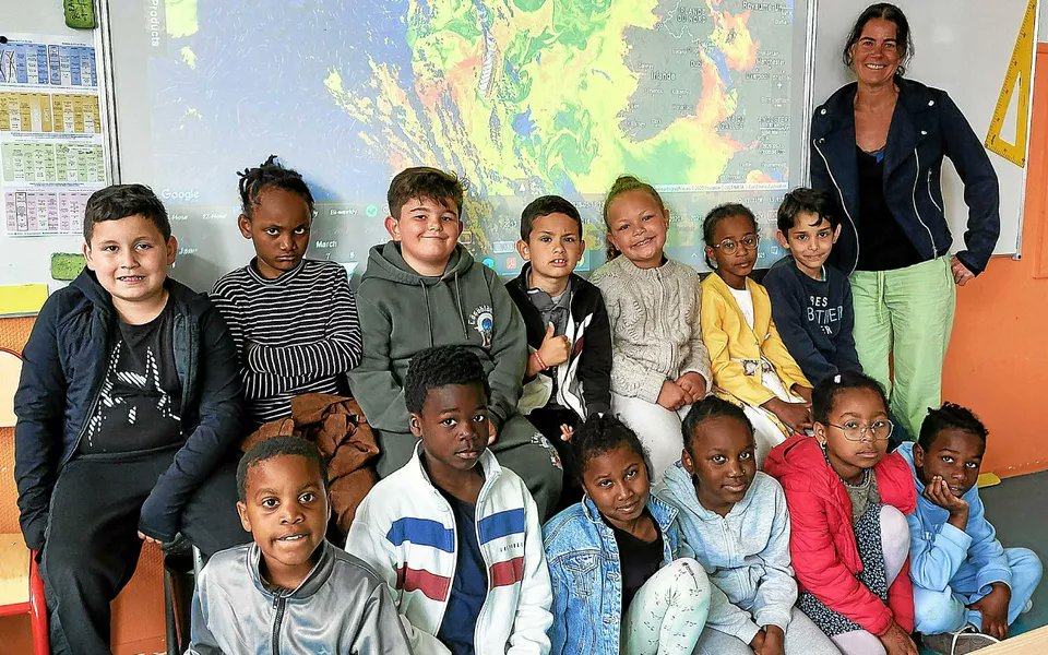 Classe de CE1 dans l’école Jean de la Frontaine à Brest, Finistère, Bretagne, France, mai 2025. Et Madame l’enseignante, qui a tété le lait gauchiste de son centre de formation est manifestement ravie… La « nouvelle France » de Jean-Luc Mélenchon a de beaux jours devant elle.