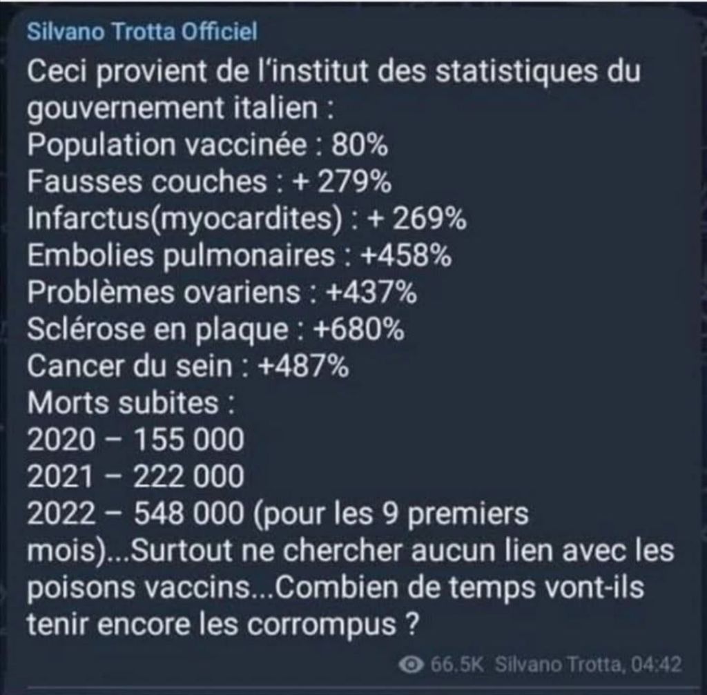 Lire la suite « Retour sur un test de soumission de masse »Quand les gens comprendront qu’on leur a menti et qu’on les a trompés en les poussant à se faire injecter un produit qui les rend malades et qui les tue, ils voudront se venger des gouvernements, des médecins et des journalistes… » – Alexis Bugnolo, anthropologue.